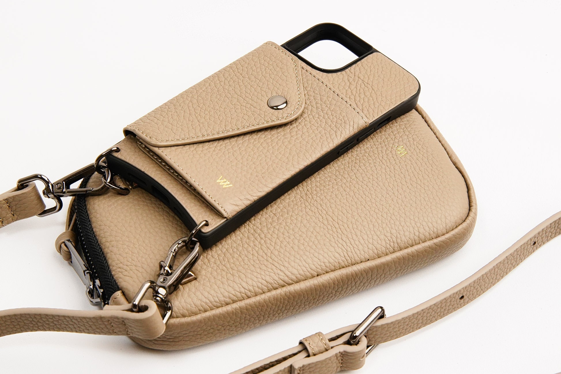 Introducing The Pouch, a versatile and spacious add-on with a minimalist design and a secure zipper closure. Crafted from genuine pebble leather with stylish silver-tone accents, it offers spacious purse-like room for your essentials, including cash, cards, sunglasses, makeup, passport, mini wallet, checkbook, charger, and more. The flexible and padded nature of this pouch allows it to seamlessly transition between being an attachable purse and a convenient hand-held wallet, providing both style and functionality in one chic accessory.